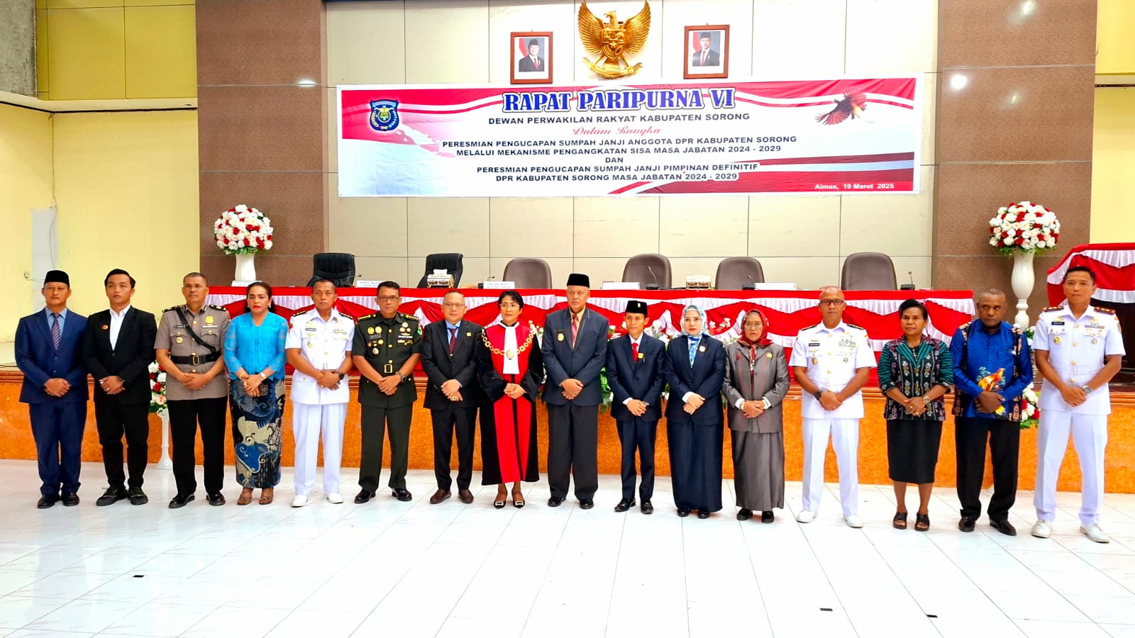 Selain itu juga dilakukan peresmian pengucapan sumpah janji pimpinan definitif DPRK Sorong masa jabatan 2024-2029 di ruang sidang DPRK setempat, Rabu (19/3/2025).